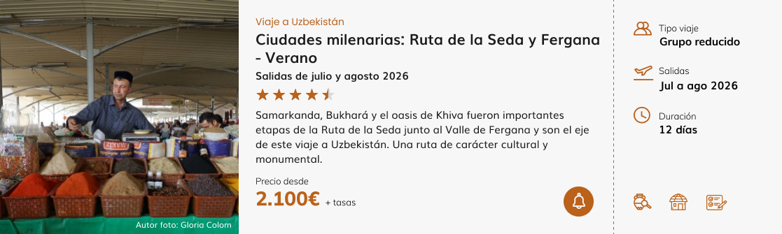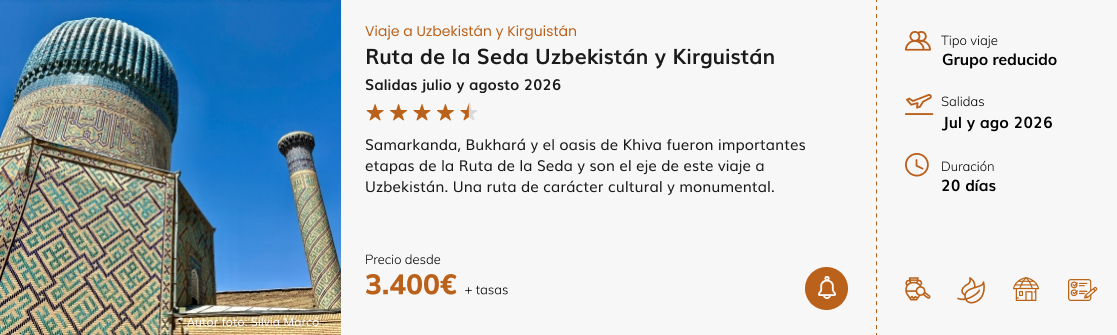 UZBEKISTÁN: La Ruta de la Seda en versión gran formato. La historia está ahí, delante de nosotros, sin necesidad de imaginar demasiado. Arquitectura islámica, antiguas ciudades caravaneras y un legado cultural impresionante.