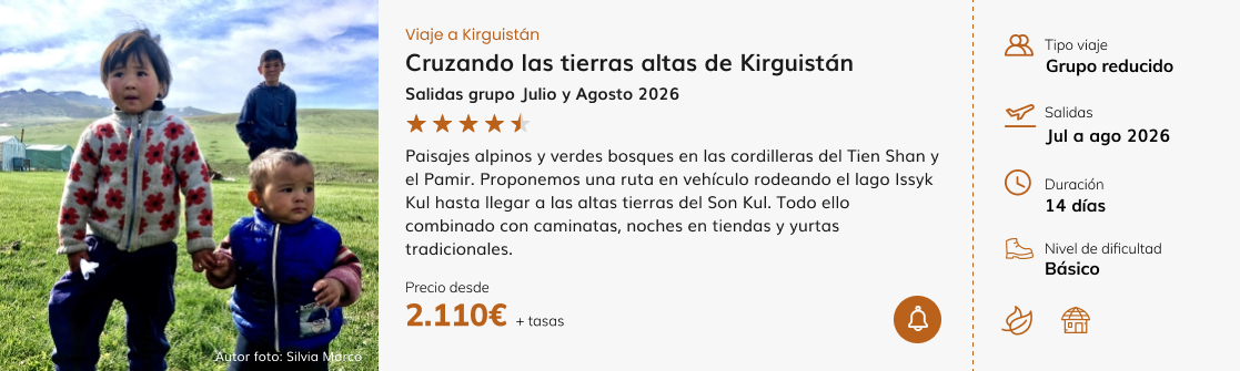 KIRGUISTÁN: Bastante alternativo. Gran parte del viaje transcurre en espacios abiertos, aldeas y zonas donde todavía se tiene la sensación de estar en un lugar poco tocado por el turismo.