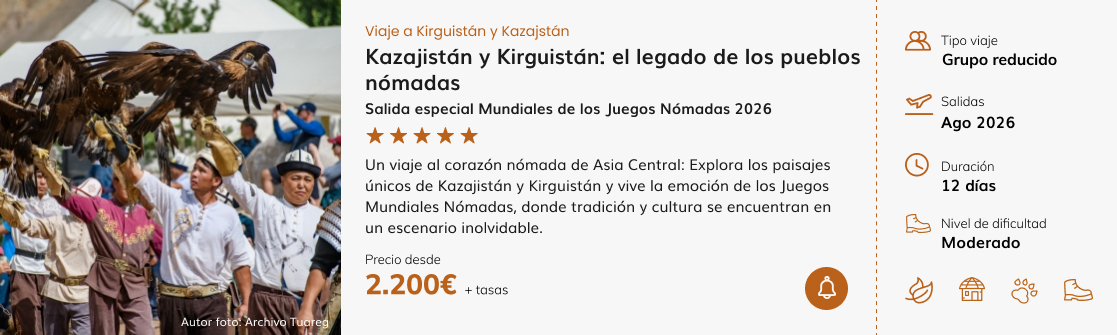 KIRGUISTÁN: No viene a competir en esta liga. En Kirguistán lo monumental no está en las piedras sino en el paisaje. Hay visitas culturales, sí, pero el viaje mira más hacia las montañas, los lagos y la vida nómada que hacia grandes conjuntos históricos.