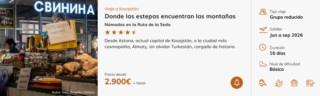 KAZAJISTÁN: Combina huellas del mundo nómada, ecos soviéticos y modernidad. Es una historia menos épica que la de Uzbekistán, pero con una personalidad singular.