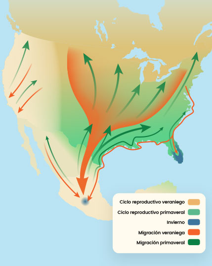 Hibernan en los bosques de abetos oyamel, a altitudes de entre 2.400 y 3.600 metros, donde encuentran un microclima idóneo para pasar los meses de invierno. Aunque puedan parecer unas vacaciones, no viajan por capricho y es que, durante este trayecto, se produce la reproducción de esta especie que en primavera arrancará de nuevo su vuelo hacia el norte, donde serán los “hijos” o “nietos” de los viajeros, quienes llegarán al destino.