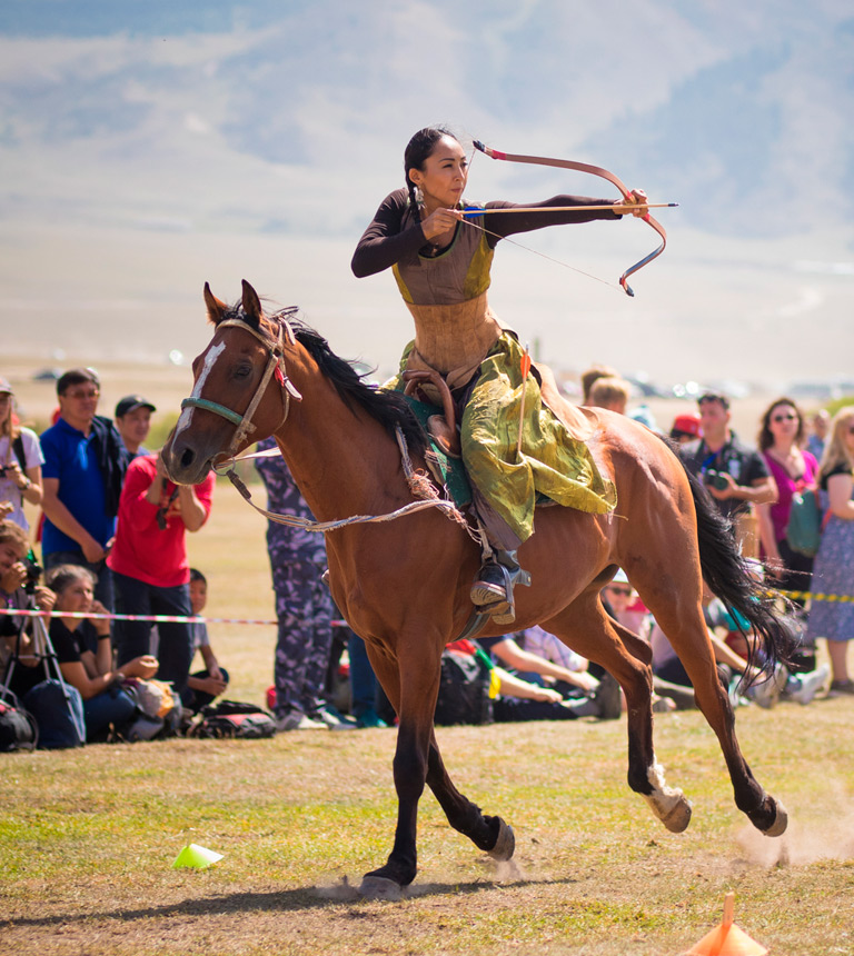 Una vez cada dos años, se celebran los World Nomad Games que alejados los formatos deportivos tradicionales, ensalzan la cultura nómada que sobre todo gira en torno a la figura del caballo. Combates de lucha montando, carreras de caballo de hasta 18 km, el Kok Boru que guarda similitudes con el actual polo o el tiro en arco encima de un caballo, tiro de cuerda … Este espectáculo es una demostración de destreza, agilidad, fuerza y habilidad.