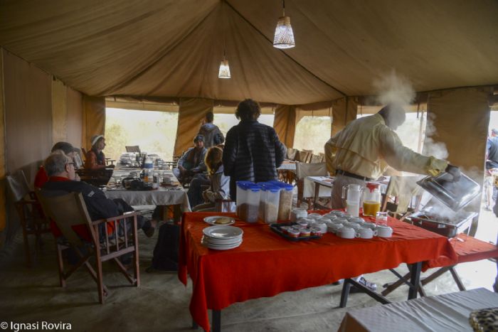Durante el viaje a Tanzania acompañando la gran migración, utilizaremos campamentos estables integrados en el paisaje y construidos con materiales locales. La mayor parte de los trabajadores de los campamentos son personas del lugar con lo que se procura favorecer el empleo local. Las comidas y cenas serán en el mismo lugar donde estemos alojados, excepto durante los safaris.